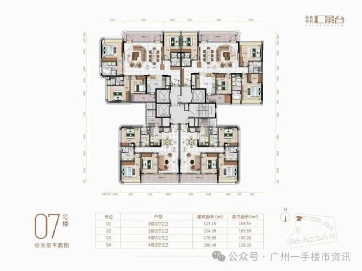 目前整个侨鑫保利汇景台住宅主要在售1-7栋和11-14栋的户型,除了12栋还未推售以外,其余8-10栋则已经基本全部售罄,现在项目主要在售户型为123-290㎡的三至五房产品,以及13栋还有少量131㎡和142㎡的稀缺南向三房户型。