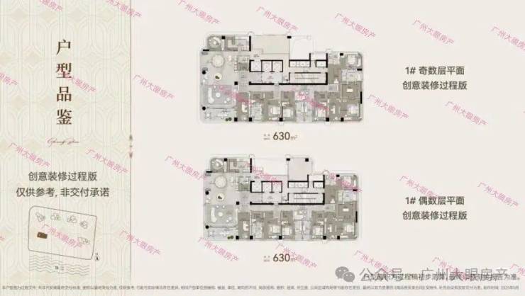 1#,35层高,只有一个面积段,约630㎡户型;