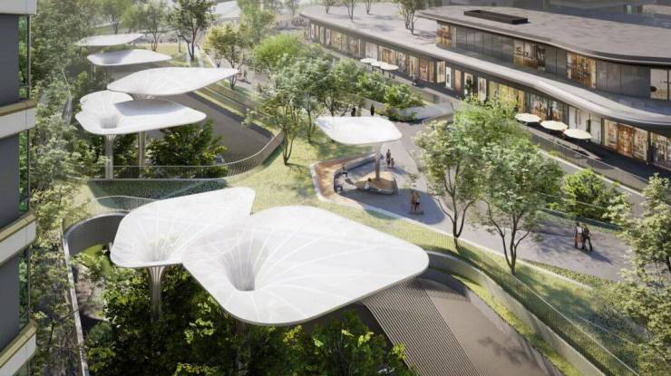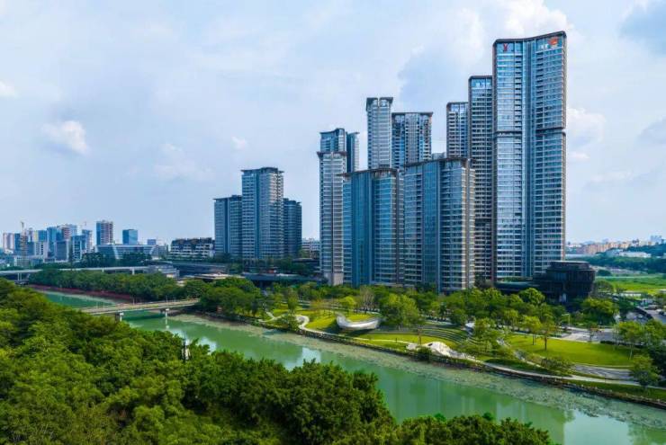 同时颠覆围合式布局,以生态中轴绿廊为核心,构建了一个融合居住、教育、办公、公园等的超级生态圈。