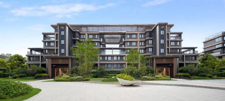 - 外立面采用LOW-E玻璃与流线型铝板,现代感与自然山景相融;