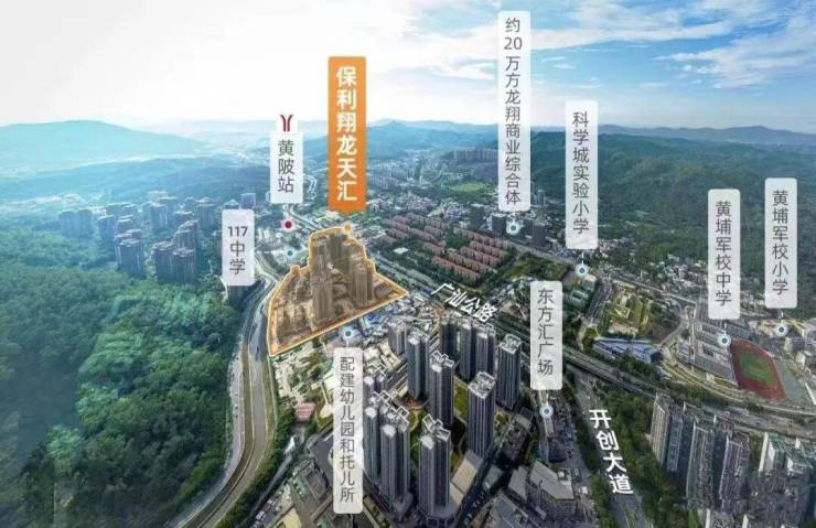 保利翔龙天汇位于广州黄埔区黄陂板块,地处天河智慧城与科学城交汇处,被称为“天河东门户” 。
