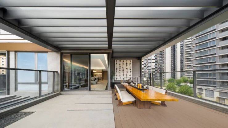 对于喜欢莳花弄草、喝茶交友的人来说,这样的露台太上头了。