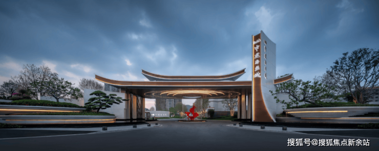 中建以“万舸争流”的巧思回应黄埔江岸的千年商港,并化为现实呈现,体现在延展约126米的城市级门楼上,气势恢宏。