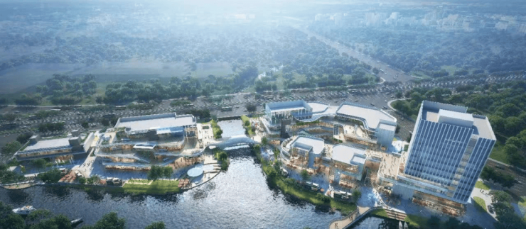 商业配套方面,中海大境自带 4 万方滨水商业街区,以新加坡*为设计蓝本,采用开放式布局,融合滨水栈桥与艺术装置,预计 2025 年内开业。