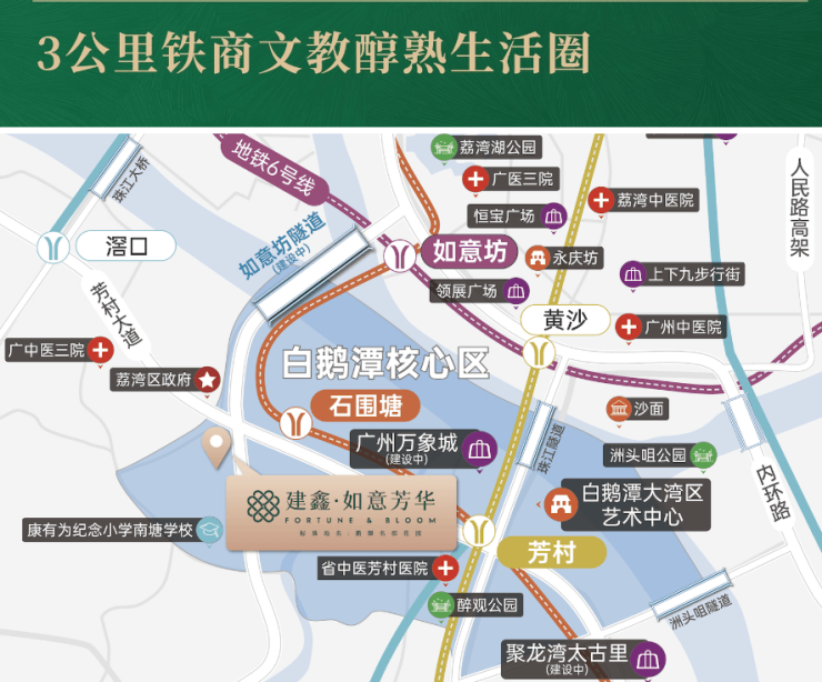 【右手千亿鹅潭】珠江西翼CBD,总固投约3700亿白鹅潭世界级商圈,享3KM核芯资源圈。