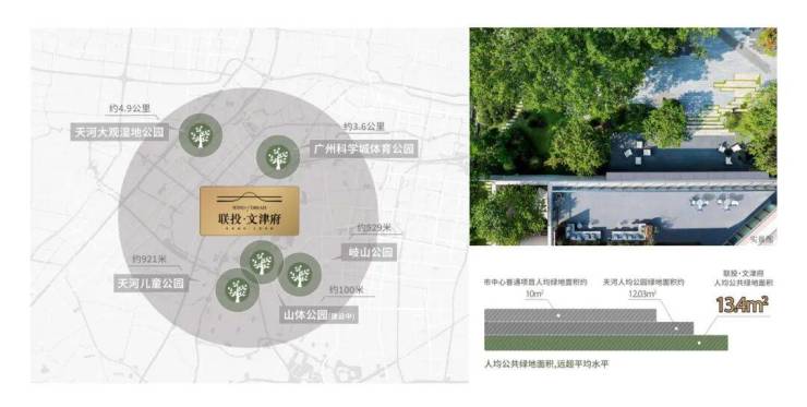 人均绿地面积约13.4㎡,负氧气离子达到约3040个/cm³是珠江新城的44倍,人均资源富余。