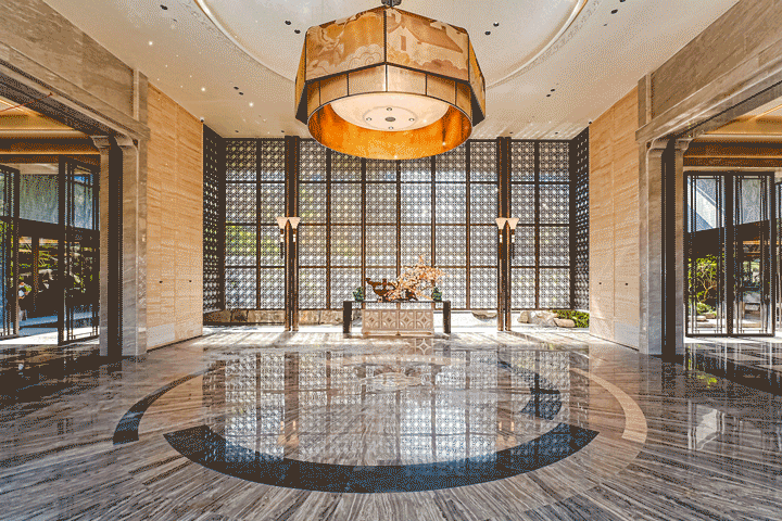 大堂设计深得岭南名园“余荫山房”之遗韵,一脉相承的不仅是形制,更是那份绵延深厚的家园余荫。