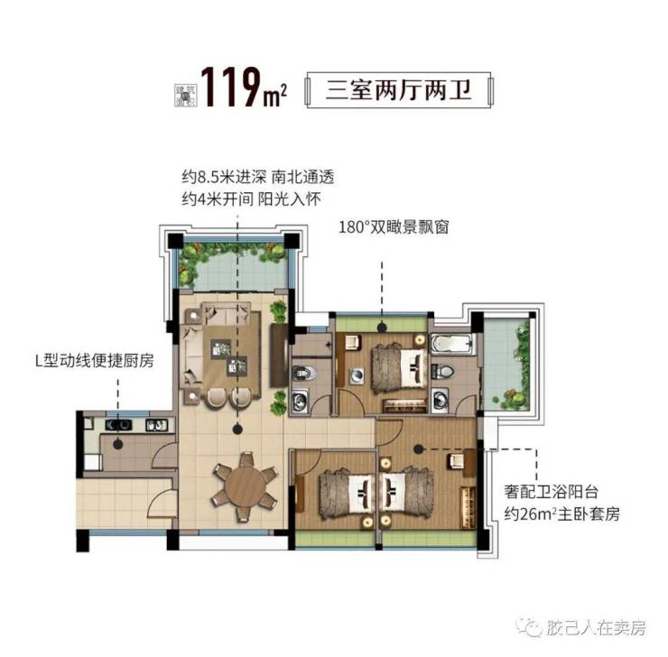 南北双阳台,利用率翻倍,越级空间感,拓宽生活想象