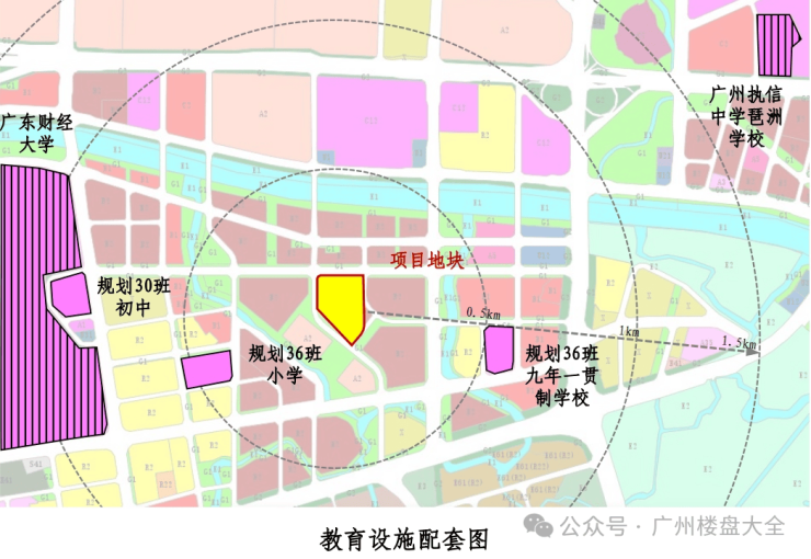 3、国际校圈:500米左右范围处规划一所36班小学、一所36班九年一贯制学校+国际私立+广东财经大学