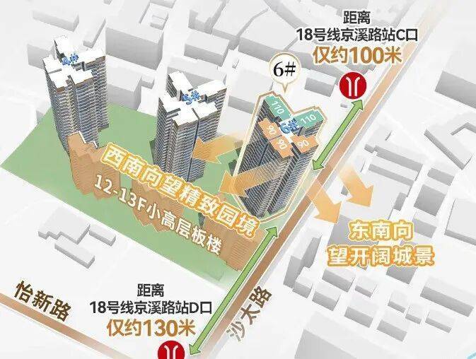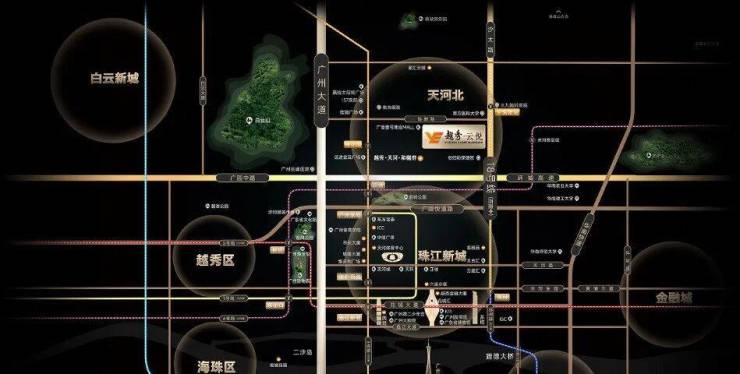 云悦二期算是一个双地铁项目。一来,家门口就是18号线京溪路站。未来业主,下楼乘坐18号线,就能一线直达琶洲(磨碟沙站)、珠江新城(冼村站)、天河北(广州东站),万博(南村万博站),根本不需要换乘。而步行约800-900米,就能到达3号线梅花园站。同样,乘坐地铁无需换乘,便能抵达体育西路、珠江新城。