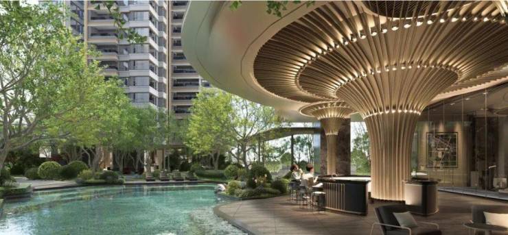 小区配套:60米宽门庭,采用鎏金奢石嵌套百工照壁工艺、顶部富贵璇光门造型、萃取木棉花的云萃专属社区符号...注入丰富内涵。