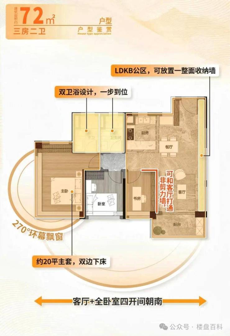 面积户型:72-152㎡(三四房)精装修