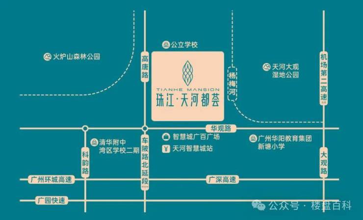 休闲——紧邻广州第一个海绵城市湿地公园—大观湿地公园,火炉山森林公园、天河智慧农业公园、旧羊山公园等公园环绕,还紧邻杨梅河,规划将打造品质智慧的都市碧道与滨河景观带;
