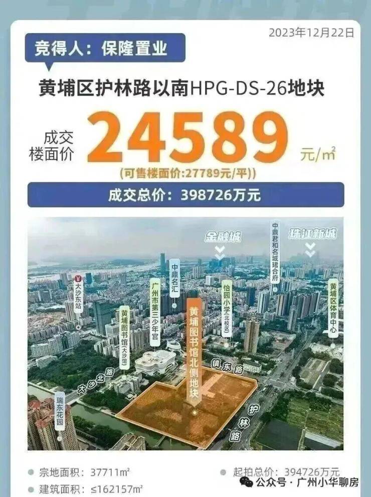 当初,黄埔图书馆北侧地块以24589元/㎡的地价(未扣除配建),扣除配建后地价超过2.7万元/㎡,位居区域榜首,成为新地王。