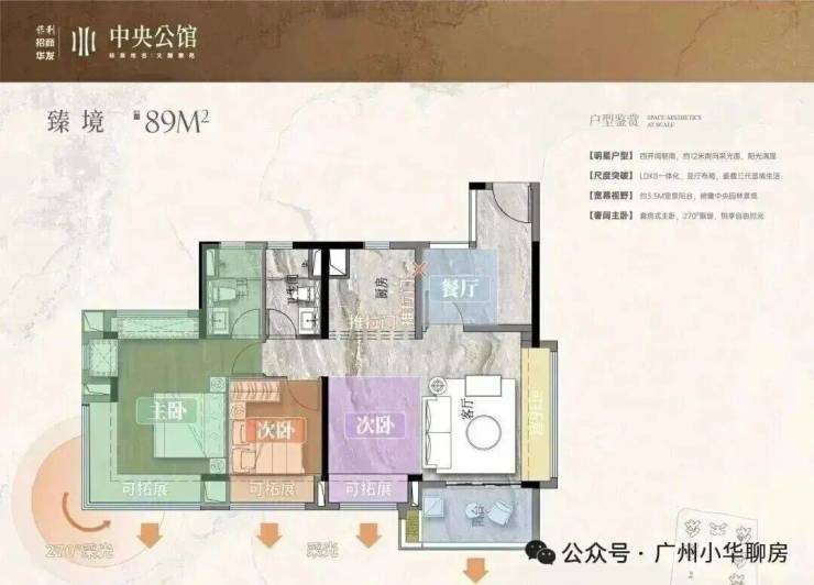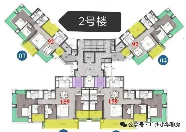 保利招商华发中央公馆采用了围合式设计,6栋47层高塔楼设计,小区自身配建有文化体育场馆和幼儿园,除了2#楼王是两梯四户,其余均为三梯六户,8#是5层高的文化馆,9#是配建3层高的幼儿园。