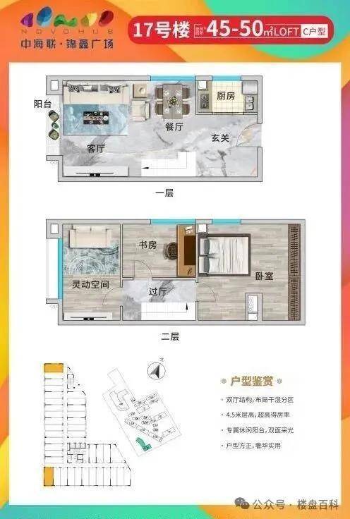产品面积:复式35-50㎡,平层33-46㎡,商墅109-133㎡