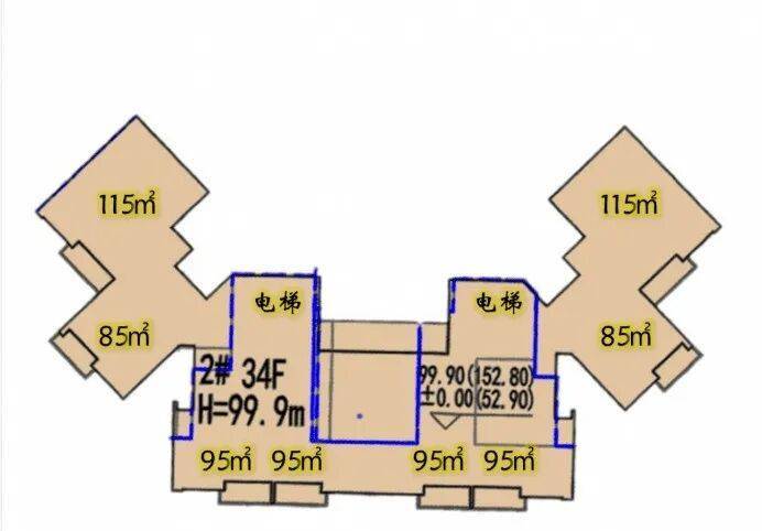 建面约85-120㎡为4-5房复式洋房,实用率超120%