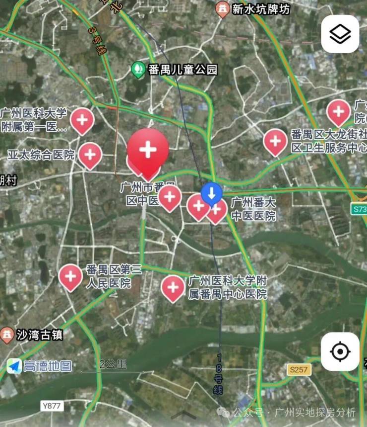 3公里范围内有广州市番禺区中心医院、何贤纪念医院、广州市番禺中医院。