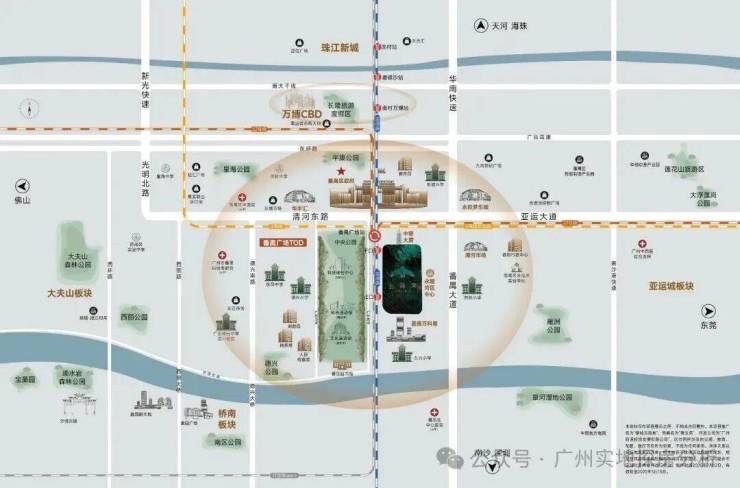 位于番禺广场中轴线上,番禺广场E口上盖与区政府仅一路之隔,四周多个商业体环伺,北侧是赫赫有名的蟑螂中银大厦,东侧是在建永隆湾区中心,南侧是区图书馆和基盛万科中央公园而且还不靠路边,没有噪音粉尘,可以说无论是交通还是景观、商业,都是顶尖。