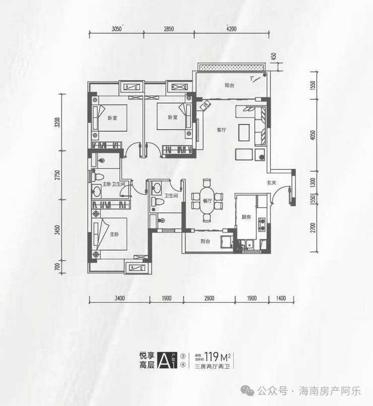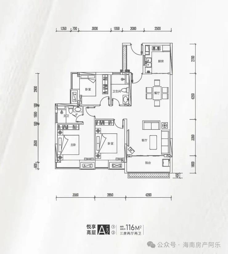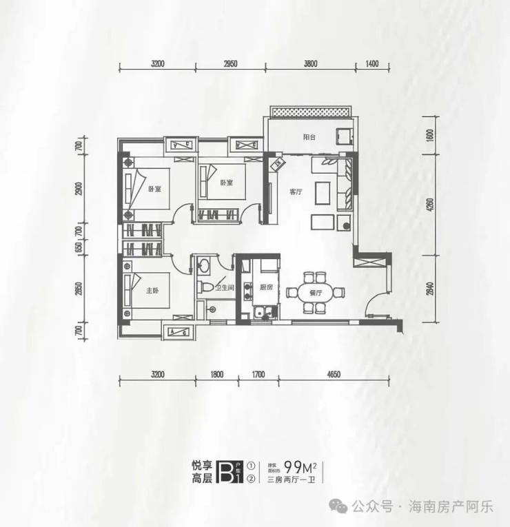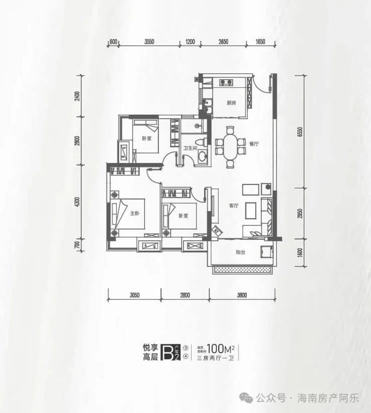 在售户型:建筑面积约99-100㎡三房两厅一卫、约116-119㎡三房两厅两卫