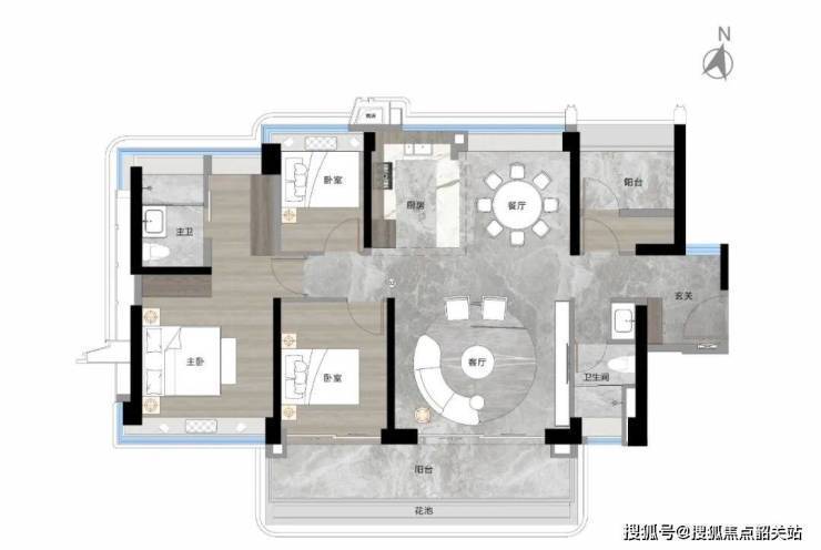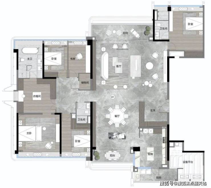 约220㎡新派科技豪宅:两梯两户、南北对流,尽享南北双园林景观。