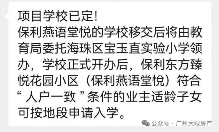 就在前不久,海珠公布最新招生政策,明确符合“人户一致”条件的保利燕语堂悦业主适龄子女可按地段申请该校。