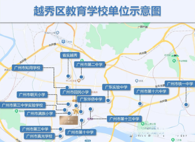 项目楼下即为市一级的广州市回民小学,实现目送式教育,虽然小学是市一级资质,但对口初中派位的学校是比较能打的,比如华侨中学、三中、十六中、省实等老牌名校。