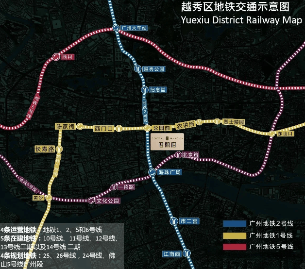 自驾方面,项目与解放路和中山路相邻,能快速接驳东风路和内环路等,快速直达天河、海珠、荔湾等各区核心。