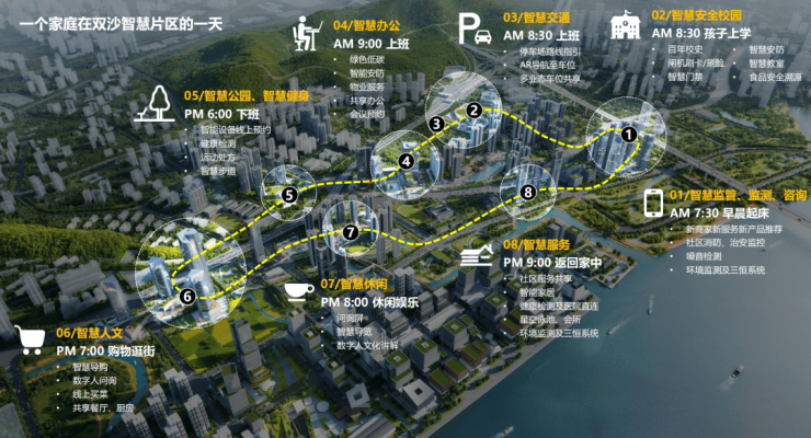 依托中建八局先进建设理念及建造技术,超前布局智慧设施,提升城市建设与综合管理能力,以提升区域价值为核心理念,打造双沙片区智慧城市解决方案