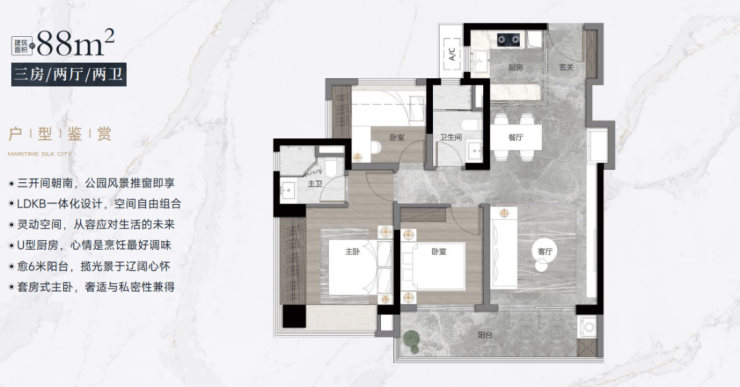 【88-90㎡三房二卫户型鉴赏】