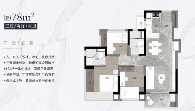 【78-79㎡三房二卫户型鉴赏】