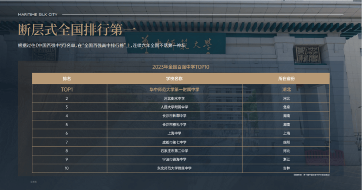 根据过往《中国百强中学》名单,在“全国百强高中排行榜”上,连续六年全国不落第一神坛。