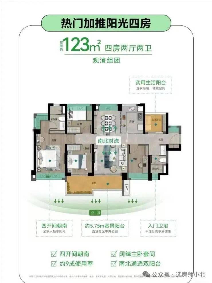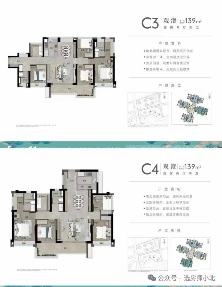 观澄组团目前主要在售3座,这栋交楼时间为26年3月份,户型有123和139平四房两卫,其中123平总价330-360万左右,139平总价390-440万左右,98平三房户型已经全面售罄!在售户型图如下: