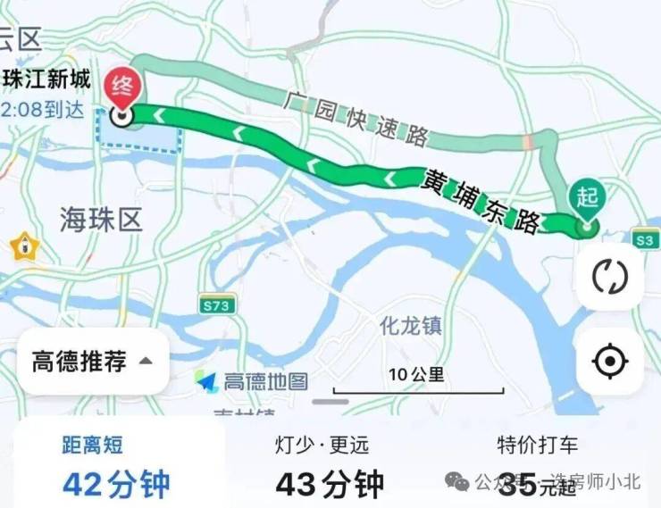到珠江新城:出小区走黄埔东路转黄埔大道,全程24公里,不堵车情况下耗时42分钟左右。