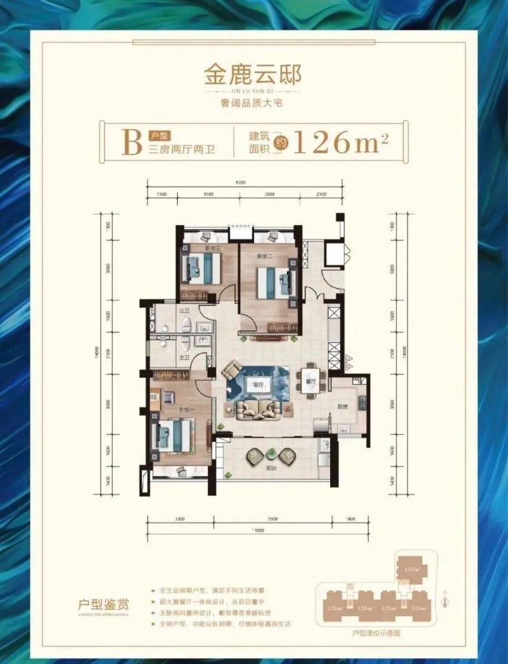 建筑面积约126㎡-133㎡奢阔品质大宅;