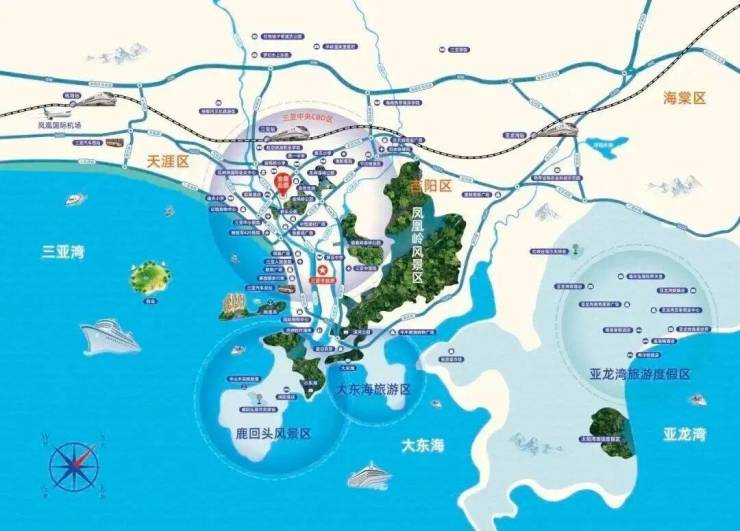 项目近临金鸡岭路、三亚河东路;城市中轴线凤凰路、鹿城大道穿梭而过;城市主干道迎宾路、解放路、落笔洞路、三亚湾路等交通网络;2公里三亚动车站,5公里环岛高速出入口,10公里凤凰机场,城市轻轨及多条公交路线停靠。立体交通网络,出行便捷无忧。
