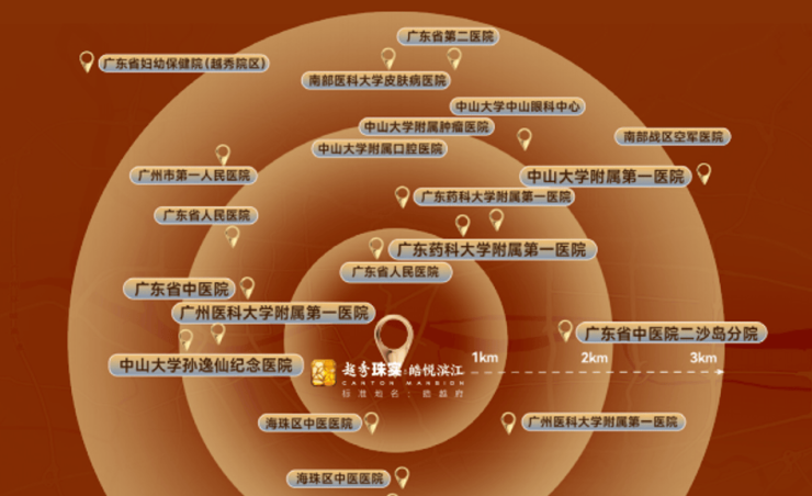 享受广医一院二院,孙逸仙纪念医院、广州市十字会医院等号称“五分钟生命线”的老城医疗保障。同时3km范围可速达海珠、越秀多个重点医疗配套。