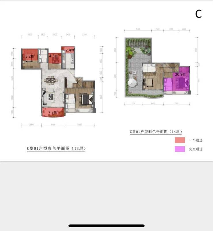 以下是C户顶楼复式户型图