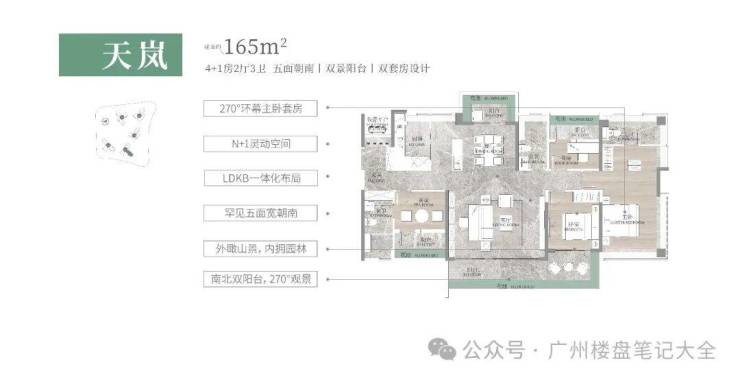 卖点四、中央生态住区 三面环山,近享山体公园、天河区儿童公园、岐山公园、天河大观湿地公园、广州科学城体育公园的生态宜居之地。