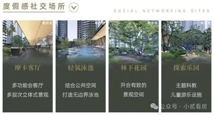 小区配套:社区内部配建一所九年一贯制学校和一所幼儿园,1000平下沉式精致会所,从效果图可以看出,这个上千方的会所,香槟色金属质感外立面,辅以大面积落地玻璃,充满了现代感。