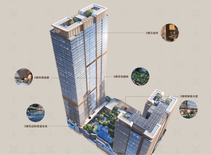 灵感取自于新加坡浮岛花园“叠级”理念,为了将寸土寸金的稀贵土地做到复合功能最大化,项目在超塔的纵向维度规划了3大核心场景。