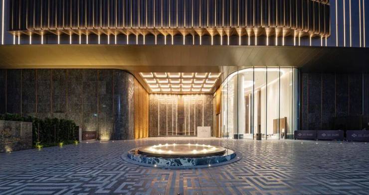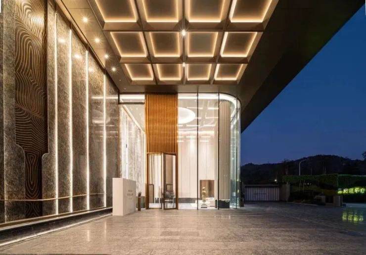即使奢华如北京瑰丽酒店,入口迎宾区高度仅为5~6m,而华发香山湖畔牺牲两层超540㎡的商业面积,打造约9.5m的奢华挑高,那是超越顶奢酒店的生活礼序。