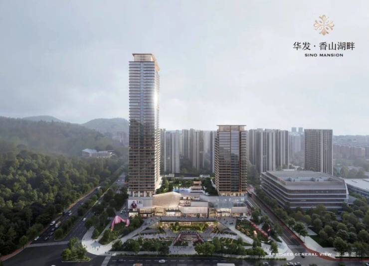 华发香山湖畔由1栋约98米(南塔)28层的高层和1栋约180米(北塔)49层的超高层,以及3.5万平购物中心组成。项目的商业购物中心4层以及下沉广场,是升级版华发商都,很值得期待哟。