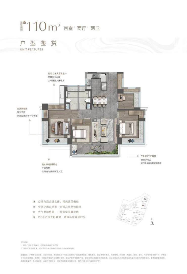 ⑥【一步到位性价比王牌 前海改善头等舱】4栋建面约138㎡奢阔山居范本:LDKB一体化,增配多功能厅、最大约15.5米南向四开间、约6m宽境阳台、主卧270°巨幕飘窗带独立卫浴及衣帽间、最高约94%拓展后综合使用率