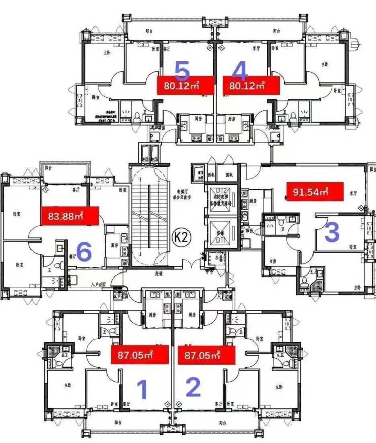 梯户比:2梯3户、3梯5户、3梯6户