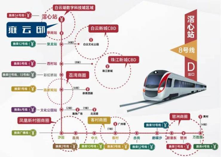 目前,8号线已设有八个换乘站,乘客可在此轻松换乘至多条地铁线路,包括但不限于1号线、2号线、3号线及广佛线,极大地方便了市民的出行需求。