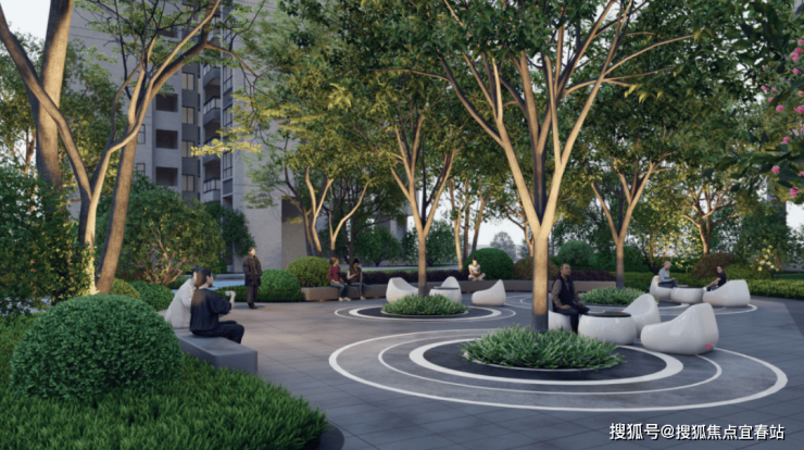 围绕阳光草坪设计的邻里会客厅、林下休闲区,是打破社交荒漠的绝佳场所。