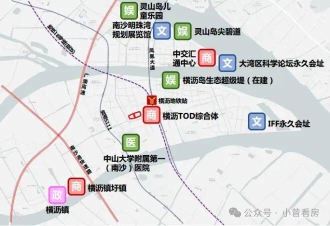 交通便利性是横沥岛的一大优势。招商林屿境距离地铁 18 号线横沥站仅 400 米,这条全国最快的城际地铁,4 站就能到达珠江新城,30 分钟内可覆盖琶洲、万博等核心商务区。未来,地铁 15 号线和 NS2 线将在此交汇,形成三线换乘枢纽。自驾方面,广澳高速、南沙港快速路以及已通车的深中通道,让横沥岛到深圳的通勤时间缩短至 1 小时以内,进一步拉近了与大湾区其他城市的距离。