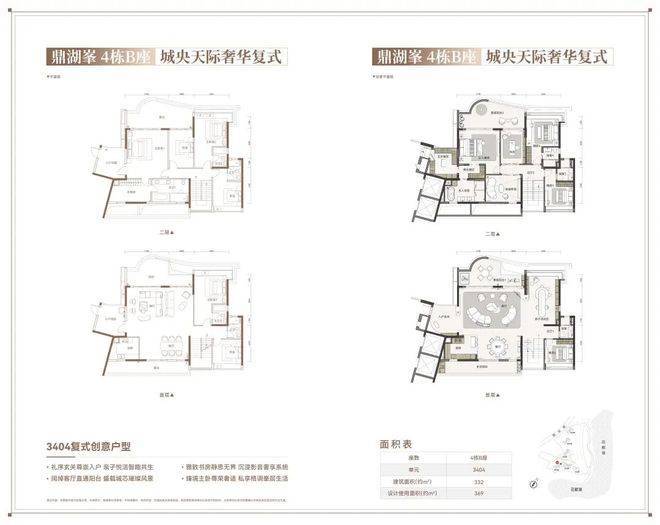 御湖峯 2 栋 B 座 3104 复式户型 187㎡ 城央天际创意双钥匙顶复·270°环幕瞰景