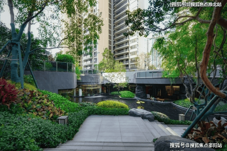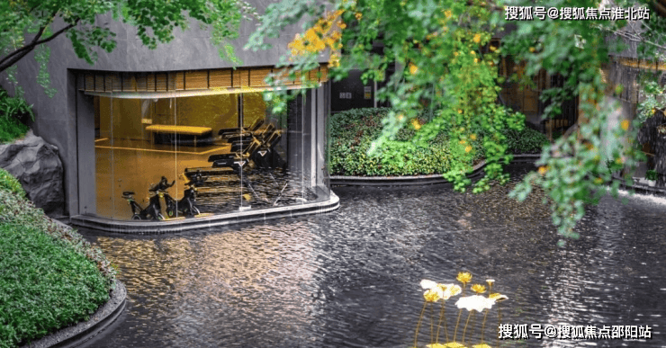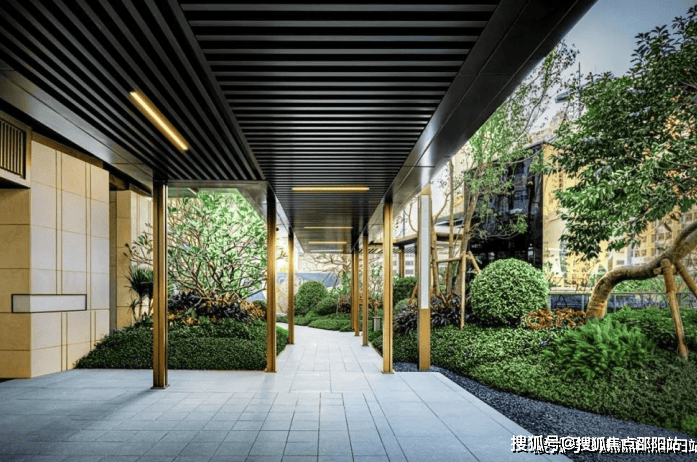 下沉庭院,约2000平方米活动广场,亭台楼阁、潺潺水景、形态优美的乌桕,迂回婉转的山川河流,纳入咫尺空间,使建筑与景观融为一体,创造出宛如天成的山水画卷,可游可居,可行可望。为业主提供大气入口的同时,也提供了舒适的活动广场。